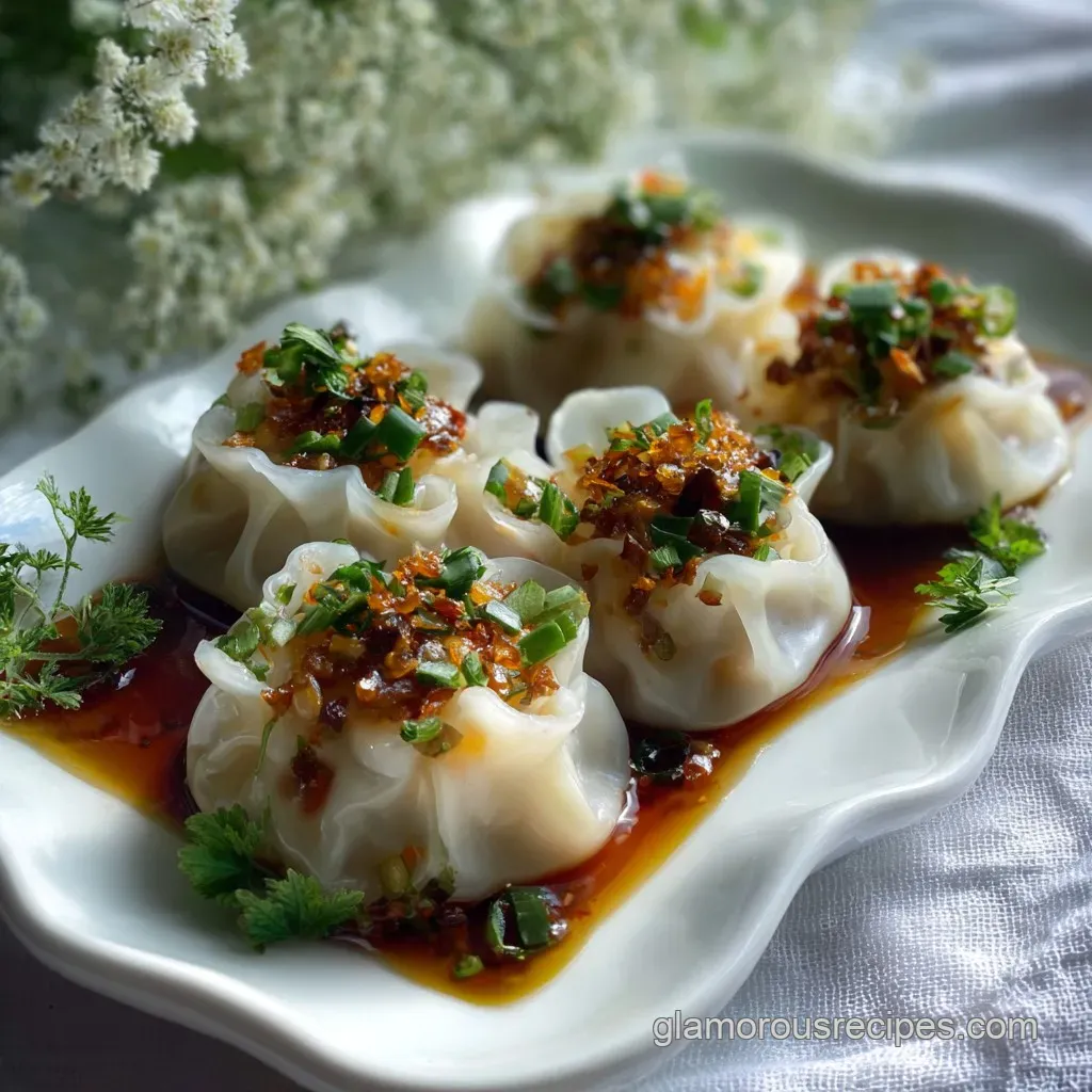 The Maillard Finish: Topping the dumplings with crispy fried garlic and its infused oil adds a final layer of savory depth. This oil seeps into the pleats of the wrapper, preventing them from drying out while adding a toasted, nutty aroma.