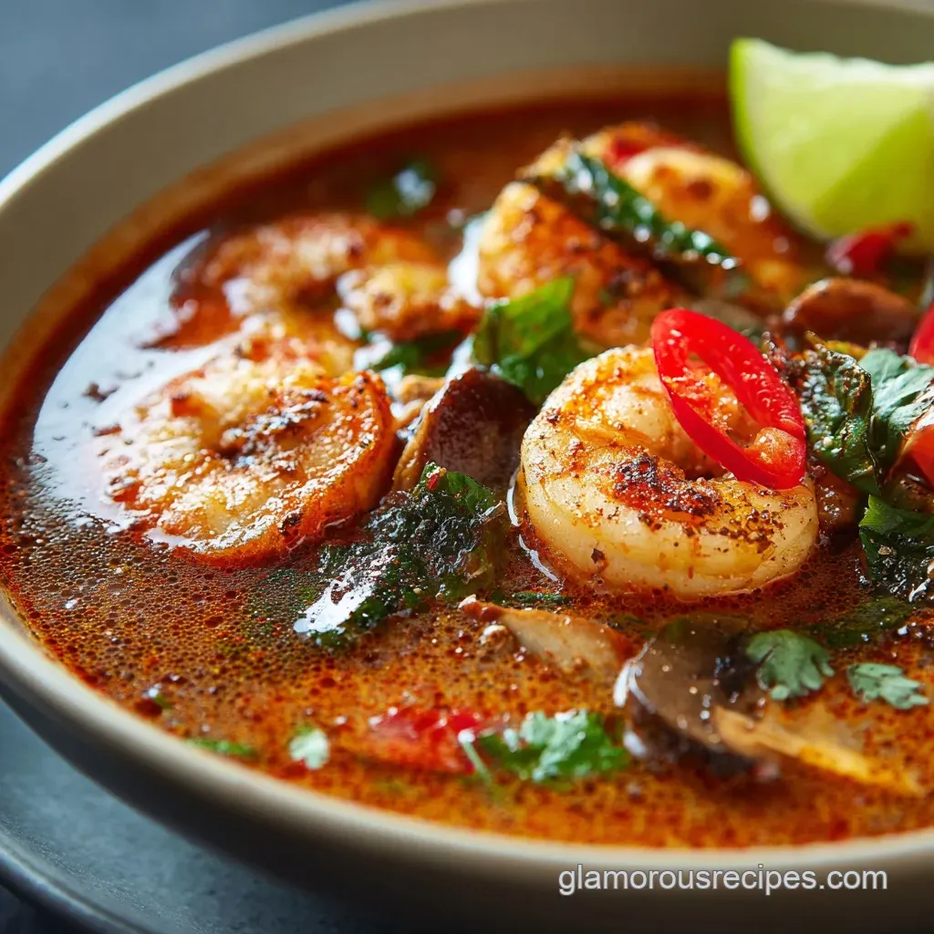 Balancing Tom Yum requires tasting and adjustment at the end. If the soup is too sour, add a small pinch of sugar or a touch of coconut milk to soften the acidity. If it tastes flat, boost the umami by adding a bit more fish sauce and ensure you finish with fresh, bright lime juice just before serving.