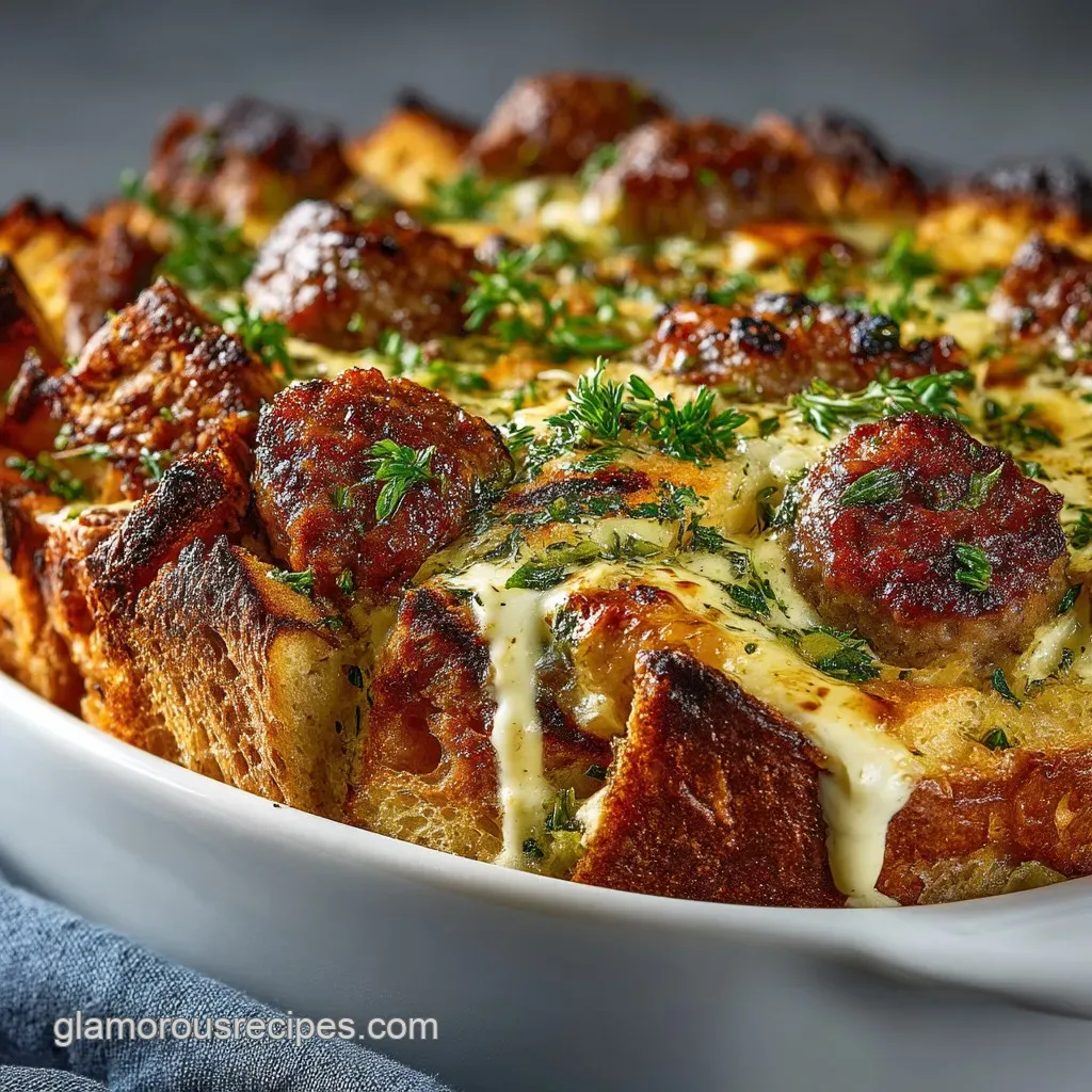 Yes, you can easily swap the sausage for 1 pound of thick cut, crispy bacon, ensuring it is drained thoroughly of grease before layering it onto the bread. For a robust vegetarian option, substitute the meat with 1 pound of sautéed mushrooms, wilted spinach, or finely chopped roasted red peppers.